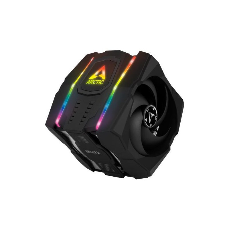 The 13 A-RGB LEDs installed in the Freezer 50 are autonomously controllable. The Freezer 50 is compatible with the common A-RGB standards of leading motherboard manufacturers for the simplest possible use. It can therefore be fully illuminated directly via the A-RGB mainboard connection or via an external controller and synchronized with the lighting of other hardware.