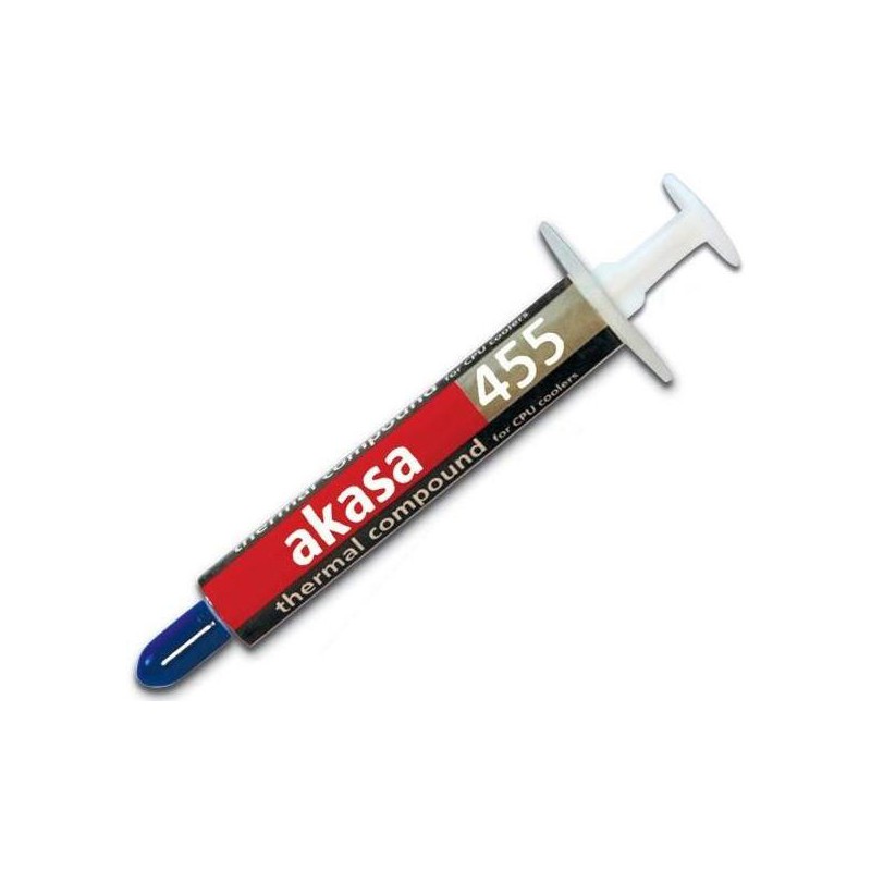 Speciální teplovodivá pasta Akasa AK-455 je látka, založená na stříbrných mikročásticích, která je díky vysoké tepelné vodivosti (2.4 W/m.°C) a stabilitě vhodná jako prostředek pro lepší předávání tepla mezi čipem a jeho chladičem, tedy například mezi výkonným procesorem počítače a kvalitním pasivním chladícím blokem.