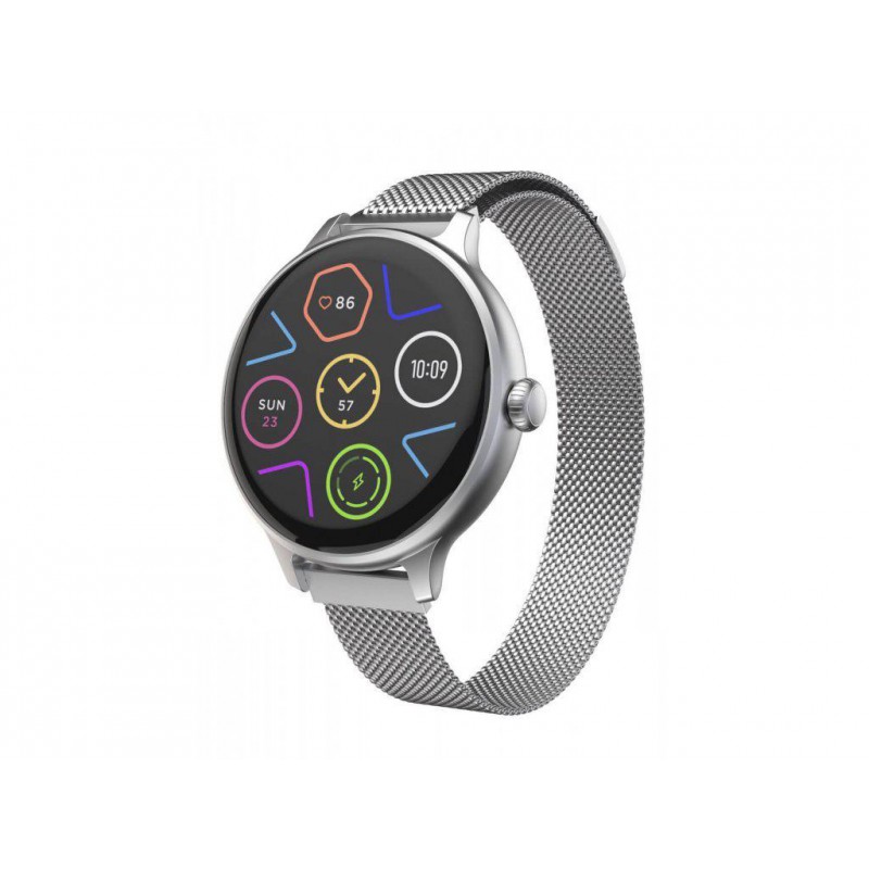 Moderní fitness smart hodinky Carneo HERO mini HR+ v elegantním stříbrném provedení disponují kulatým Super HD AMOLED barevným displejem. Umožňují měření srdečního tepu, stresu, BMI, ušlé vzdálenosti, monitorování spálených kalorií či kvality spánku. Jejich součástí je 230mAh baterie s výdrží 3 až 4 dny. Podle certifikace IP67 jsou odolné vůči vodě a prachu. Jsou kompatibilní s operačním systémem iOS a Android. Hodinky mají luxusní Milánský, kovový řemínek v zlatomrůžové barvě, který lze vyměnit za silikonový řemínek v jiné barvě či kožený a tím pádem změnit hodinkám manažerský vzhled za sportovní. Vkusný, jednoduchý a luxusní design se snadno kombinuje k obleku či volnočasovému outfitu. Hodinky i aplikace jsou kompletně v češtině, takže si budete jistě spolu dobře rozumět. Součástí balení je také silikonový, šedý řemínek.