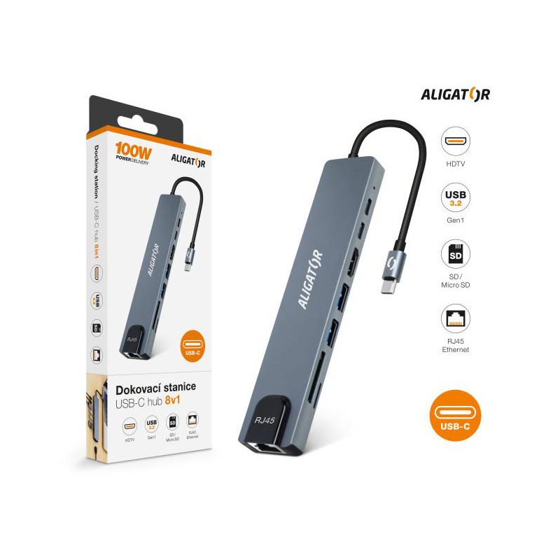 USB-C dokovací stanice 8 v 1 je kompaktní a lehká - ideální pro použití na cestách.