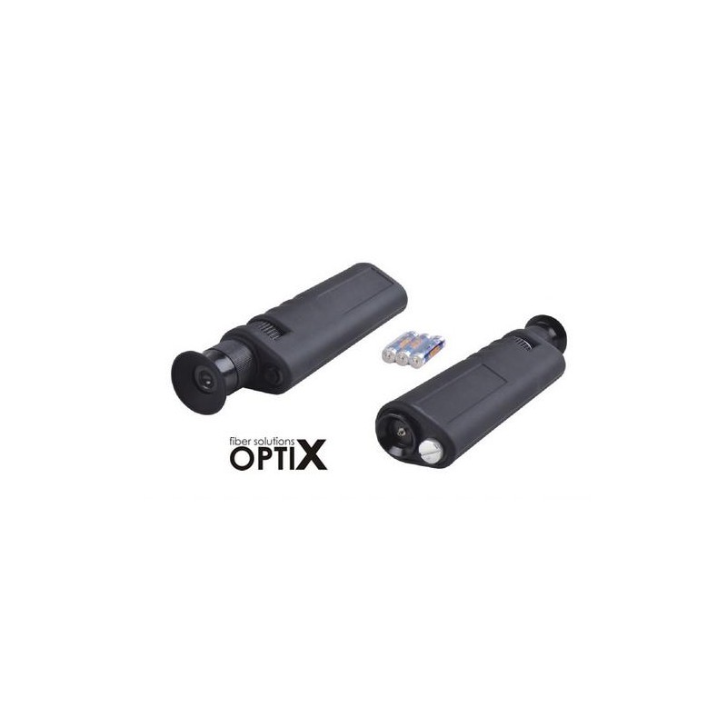 Kompaktní mikroskop pro rychlou vizuální kontrolu optických konektorů. Nabízí až 200násobné zvětšení a podporuje konektory typu SC (2,5 mm) i LC (1,25 mm). Napájení pomocí 3× AAA baterií umožňuje snadné použití v terénu bez nutnosti dalšího vybavení.