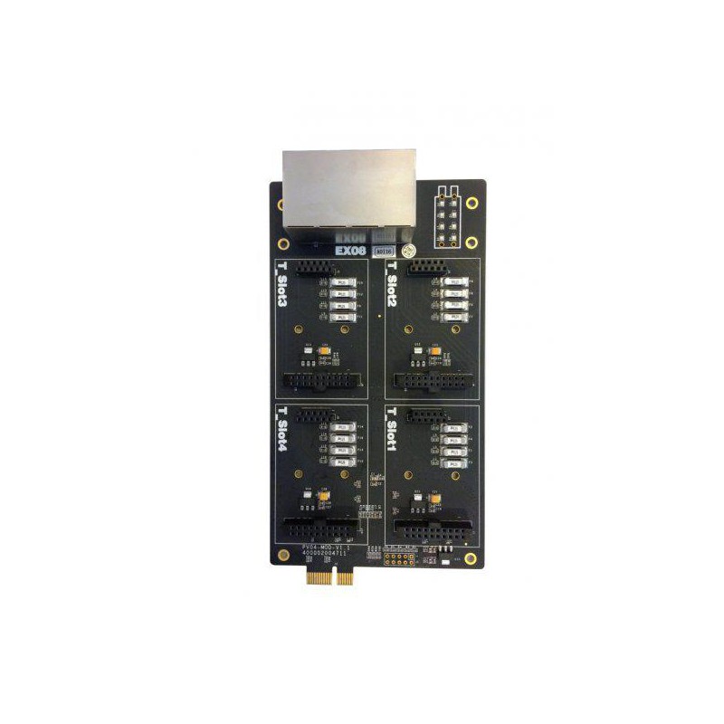 Rozšiřující karta Yeastar EX08 pro použití v kombinaci s ústřednami Yeastar S100 nebo S300. Každá karta obsahuje 4 sloty pro S2, O2, SO, BRI nebo GSM moduly.