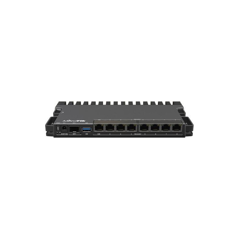 RB5009 je zcela nová řada RouterBOARDů, která přichází s pasivním chlazením, inovativním až futuristickým designem a vysokým výkonem (o 60 - 90 % vyšší než RB4011) o který se zasluhuje 64bit ARM architektura procesoru s taktem 1400 MHz, 1GB RAM typu DDR4 a 1GB NAND uložiště. Router disponuje 7× Gigabit LAN, 1× 2.5Gbit LAN s možností PoE IN i PoE OUT (802.3af/at) na všech osmi ethernetových portech s celkovým PoE budgetem 130 W, DC jack či svorkovnici z levého boku (24 .. 57V DC), 1× SFP+ slot a 1× USB 3.0. Právě díky designu kovového šasi je možné s dokoupitelným příslušenstvím namontovat router do 19" racku. Dokonce až 4 routery naráz se díky úsporným rozměrům vměstnají do 1U výšky!