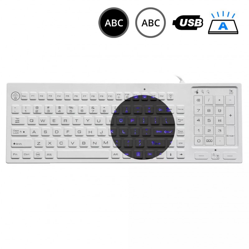 SK318BL – Silikonová antibakteriální klávesnice s touchpadem podsvícená, CZ, USB, IP68