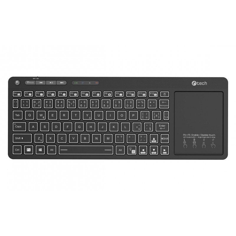 C-TECH WLTK-03 – Elegantní bezdrátová klávesnice s touchpadem, podsvícením a maximálním komfortem