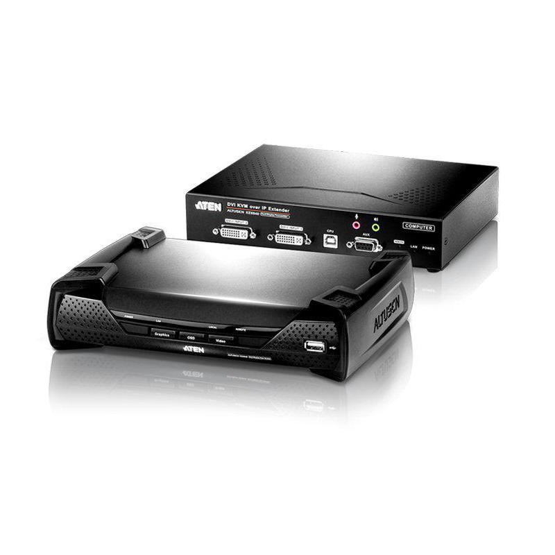 Aten KE-6940 Dual View zařízení umožňuje vzdálené ovládání počítače/pracovní stanice nebo KVM přepínače přes počítačovou síť či internet. Podporuje přenos digitálního videa DVI, audia, USB klávesnice a myši.