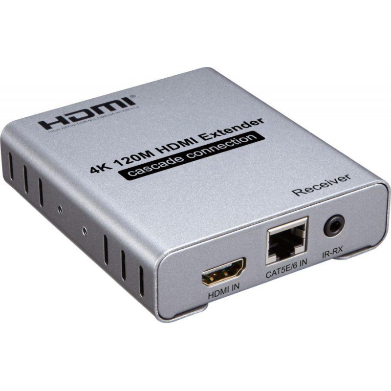 Extender umožňuje po jednom síťovém kabelu bez zpoždění přenést HDMI 4K nebo FULL HD signál až na vzdálenost 120m. Umožňuje zapojovat přijímače za sebou do kaskády a vytvořit řetěz stejných monitorů.