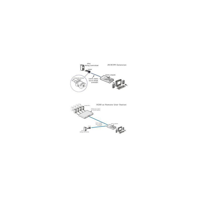 CATx extendery AdderLink X200 umožňují pracovat z počítačem nebo KVM přepínačem na vzdálenost až 100 metrů po běžném UTP kabelu. Extender přenáší klávesnici, monitor a myš. Můžete tak přemístit počítač do technologické místnosti nebo spravovat vzdáleně servery z pohodlí kanceláře. Vysílač v podobě malého kabelového adaptéru je napájen přímo z PC.