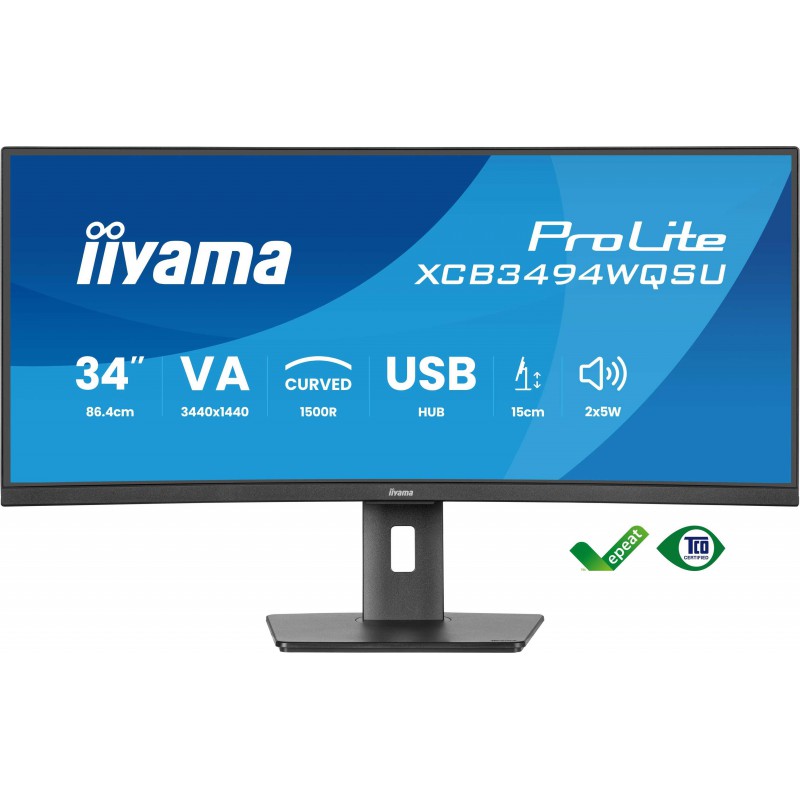 34” curved ultra-wide screen with 15cm height adjustable stand