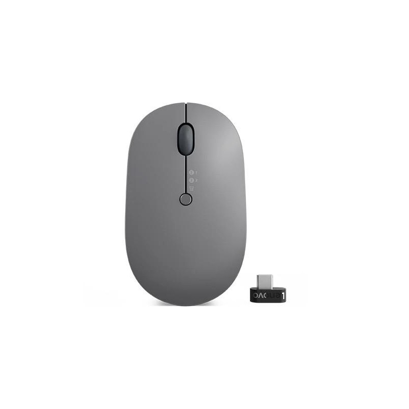 Lenovo Go Wireless Multi-Device Mouse, navržená jako jediná myš, kterou potřebujete, lze spárovat až se 3 zařízeními a bez námahy mezi nimi přepínat stisknutím tlačítka. Kromě svých možností multitaskingu lze tento výkonný produkt používat téměř na jakémkoli povrchu a jen zřídka se mu vybije baterie, a to díky blue optical sensoru a wireless Qi nebo kabelově rychle nabíjecí baterii USB-C.
