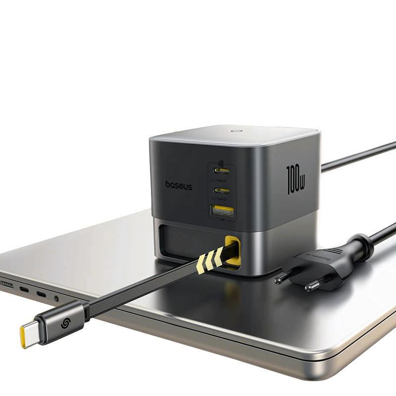 *Super Gan Baseus stolní nabíječka 2 porty typu c + 1 port USB nabíjecí stanice se 100w zatahovacím kabelem typu c - zástrčka / černá