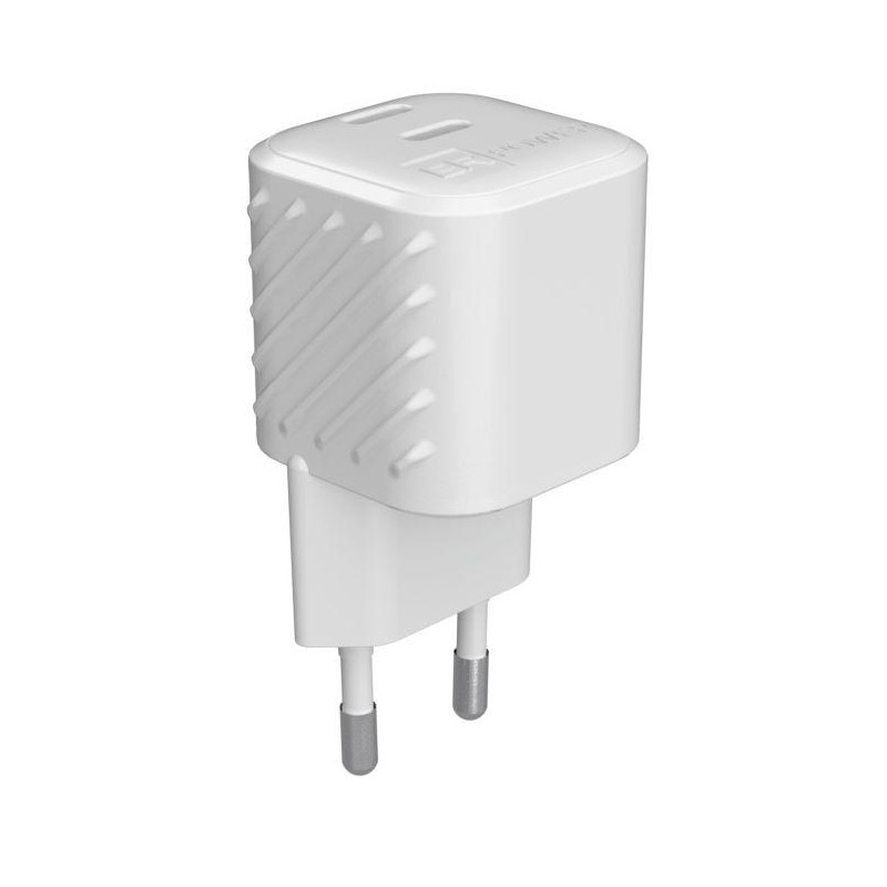 GaN Wall mini chargers s výstupním výkonem 45W a originálním desingem. Je to nejmenší nabíječka ve své kategorii a má unikátní dělení výstupního portu. Má dva USB-C výstupy, Maximální výkon nezávislý na portu. 36W – při společném zapojení se dělí výkon na půl