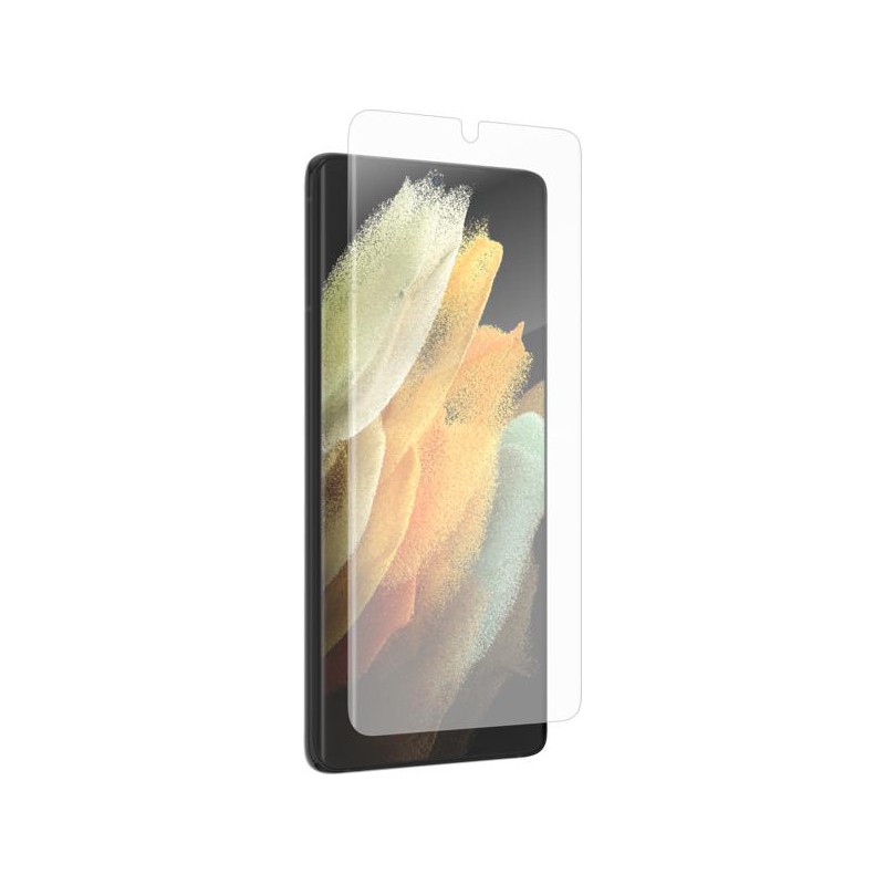 Ochranné hybridní sklo s antimikrobiální složkou, která eliminuje růst bakterií. Sklo je navíc obohaceno o materiál D3O. D3O využívá vlastnosti ultra lehkého elastomeru, který se chová jako nenewtonská tekutina. To znamená, že v klidu je tato hmota tekutá, a při mechanickém nárazu tuhne a chová se jako pevný předmět, po chvíli klidu opět povolí.