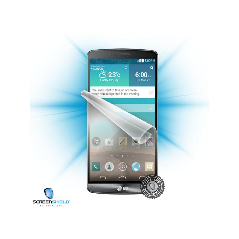 Kvalitní fólie Screenshield představuje skvělý nástroj pro dlouhodobé zachování displeje Vašeho telefonu LG G3 D855 v perfektní kondici. Zajistí dokonalou ochranu před odřením jakéhokoliv charakteru. Přitom je průhledná a zakryje již existující drobné škrábance. Díky její extrémní odolnosti si také výrobce může dovolit poskytovat na ní doživotní záruku. Součástí tohoto produktu je ochrana displeje na bázi průhledné polyuretanové fólie.