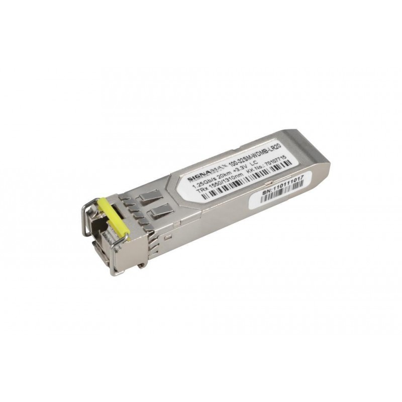 100-32WDMB-LR20 je 1G SFP optický WDM modul s konektorem LC pro Singlemode kabel na vln. délkách Tx1550nm a Rx1310nm. Modul je kompatibilní se zařízeními jiných výrobců (např. Cisco). Dosah modulu je do 20km. SFP module podporuje diagnostiku optického spojení pomocí funkce DDM (Digital Diagnostic Monitoring). Standardní záruka je 3 roky. Každý modul je individuálně testován.