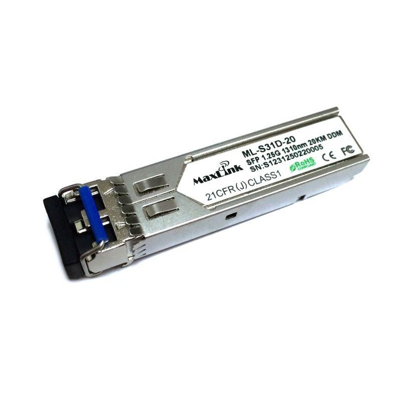 ML-S31D-20 je 1.25G SFP modul s 1310nm vlnovou délkou, dvěmi LC konektory a maximální vzdáleností 20km po singlemode optickém vlákně. SFP modul podporuje monitoring, neboli DDM funkci.