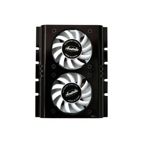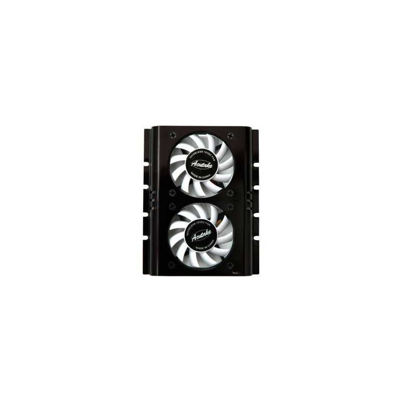 Kvalitní supertichý chladič pro chlazení 3,5" pevných disků o hlučnosti jen 15,6dB/A s dvěmi aktivními 60x60x10mm ventilátory s novými Hypro Bearing ložisky a třípinovými konektory umožňujícími pohodlný monitoring funkčnosti případně regulaci otáček ventilátoru.