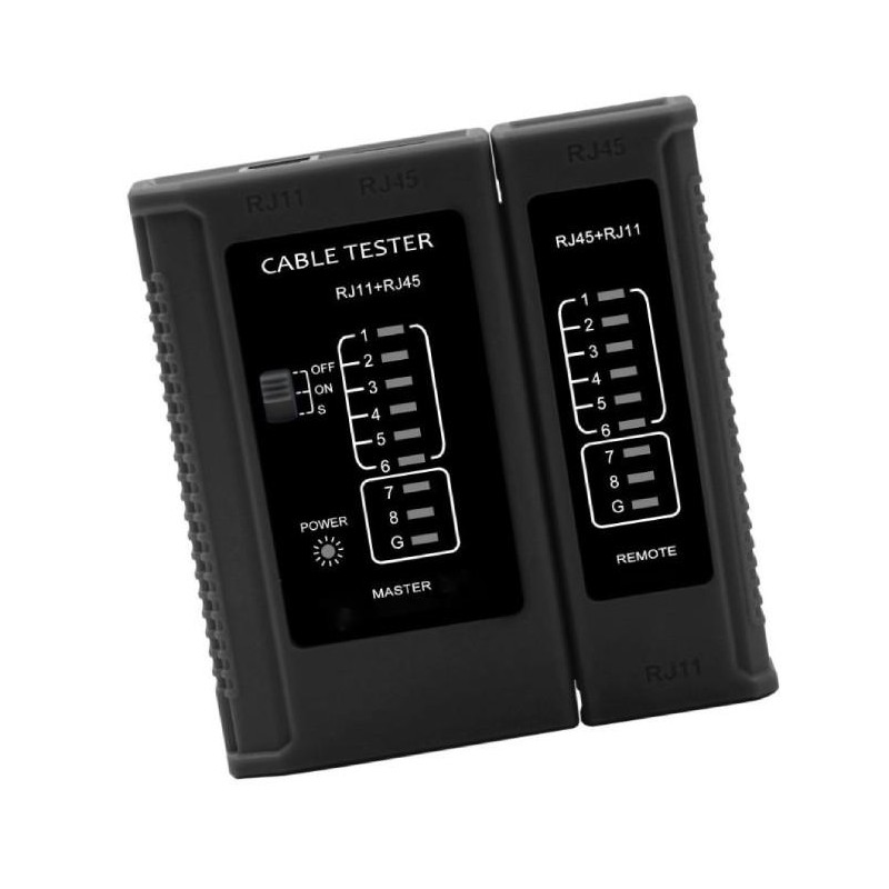 Tester opakovaně testuje jednotlivé vodiče a pomůže Vám odhalit přerušené kabely, zkrat, překřížené dráty nebo jiný problém na síťovém vedení. Tester je vhodný pro sítě s konektory STP/ UTP RJ45 a RJ11 Cat5, Cat5E, Cat6, Cat7. Oddělitelná externí jednotka, ulehčuje detekci poruchy sítě v budově.