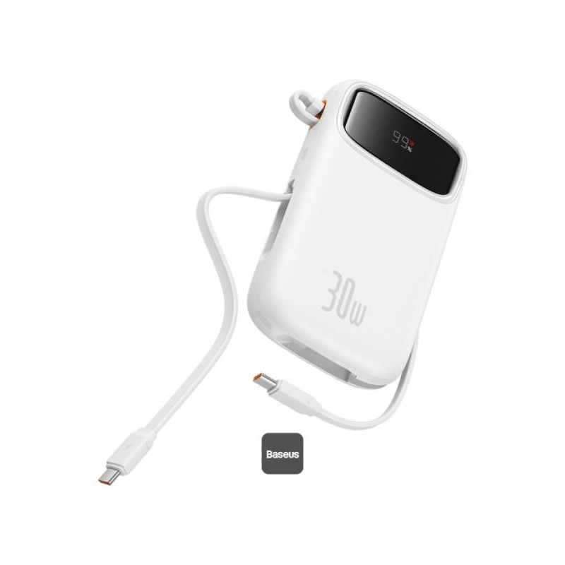 Baseus QPow2 10000mAh Digital Display Fast Charge Power Bank 30W s vestavěným duálním kabelem typu C - bílá
