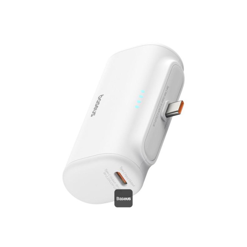 Baseus Compact Series 5000mAh rychlonabíjecí power banka 20W PD s vestavěným konektorem Type-C | Kapesní power banka na cesty - bílá