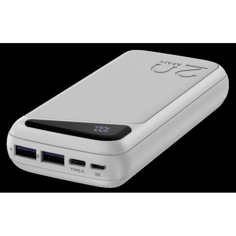 NAVITEL PWR20 MX WHITE je přenosná externí baterie s kapacitou 20000 mAh. Dva porty USB-A a reverzibilní port USB-C umožňují nabíjet více zařízení současně. Kapacita 20 000 mAh postačí na několik cyklů dobití tabletu, smartphonu nebo chytrých hodinek . Pro vizuální kontrolu zbývající úrovně nabití je na pouzdře umístěn digitální displej.