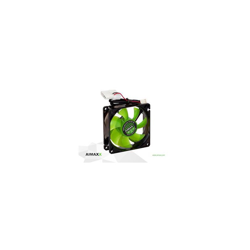 Spolehlivost, tichost a atraktivní svěží design - to jsou ventilátory AIMAXX. Všechny AIMAXX ventilátory jsou vybaveny unikátním Nanomaxx ložiskem. Toto AIMAXXem patentované ložisko je vyrobeno ze super tenkého ale extra trvanlivého materiálu a zaručuje vysokou životnost a velmi nízkou hlučnost, dosaženou malým třením. Svěží zelená AIMAXX barva je zdůrazněna zeleným LED podsvícením. Celá série je balena v poutavém zeleno-černém balení s oknem pro snadnější prezentaci zákazníkům.
