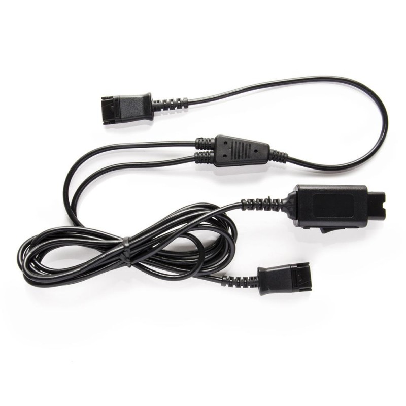 Tréninkový Y adaptér pro náhlavní soupravy s QD konektory. Tréninkový kabel obsahuje přepínač pro vypnutí mikrofonu Mute a umožňuje připojení dvou náhlavní souprav do jednoho stolního telefonu, což umožňuje monitorovat druhého uživatele a účastnit se hovorů. Obě sluchátka mohou poslouchat, ale pouze jeden mikrofon je ztlumen. Přepínač ovládá, který mikrofon je ztlumen. Je to nezbytná pomůcka pro školení, která zlepší efektivitu zpracování hovorů. Ideální pro školení prodejců a zaměstnanců call centra. Délkakabelu je 2 m.