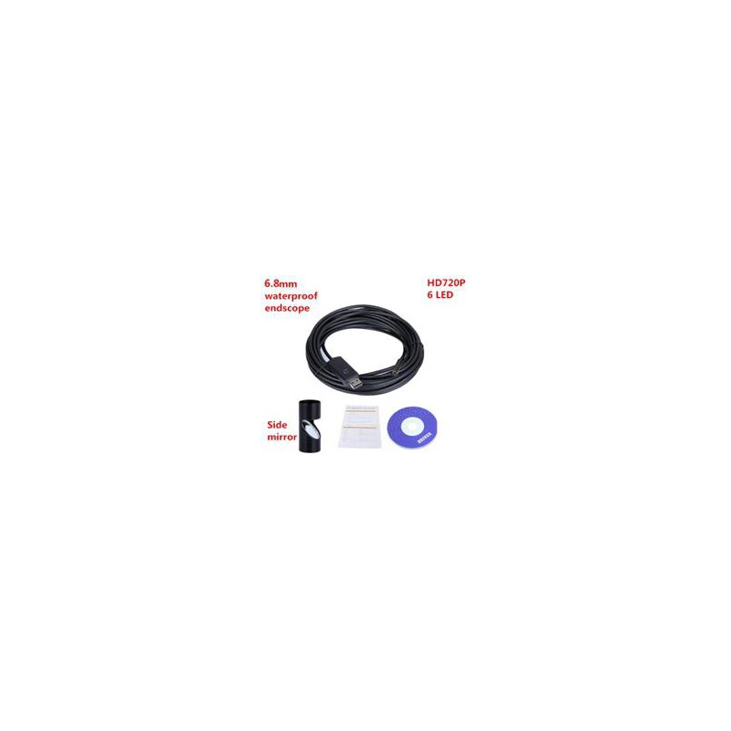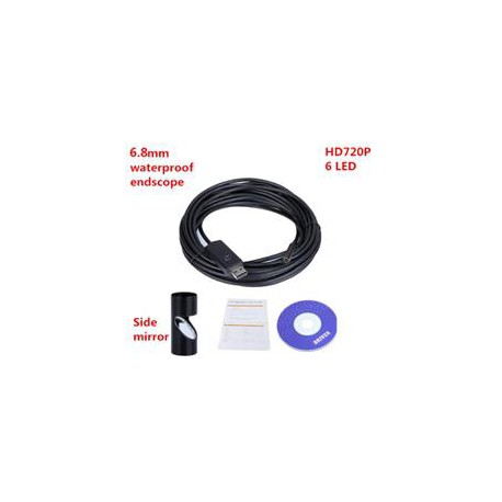 Voděodolná USB kamera s rozlišením VGA CMOS, kabelem 5m a zrcátkem pro kontrolu nepřístupných částí, pro počítač, tablet i mobil.