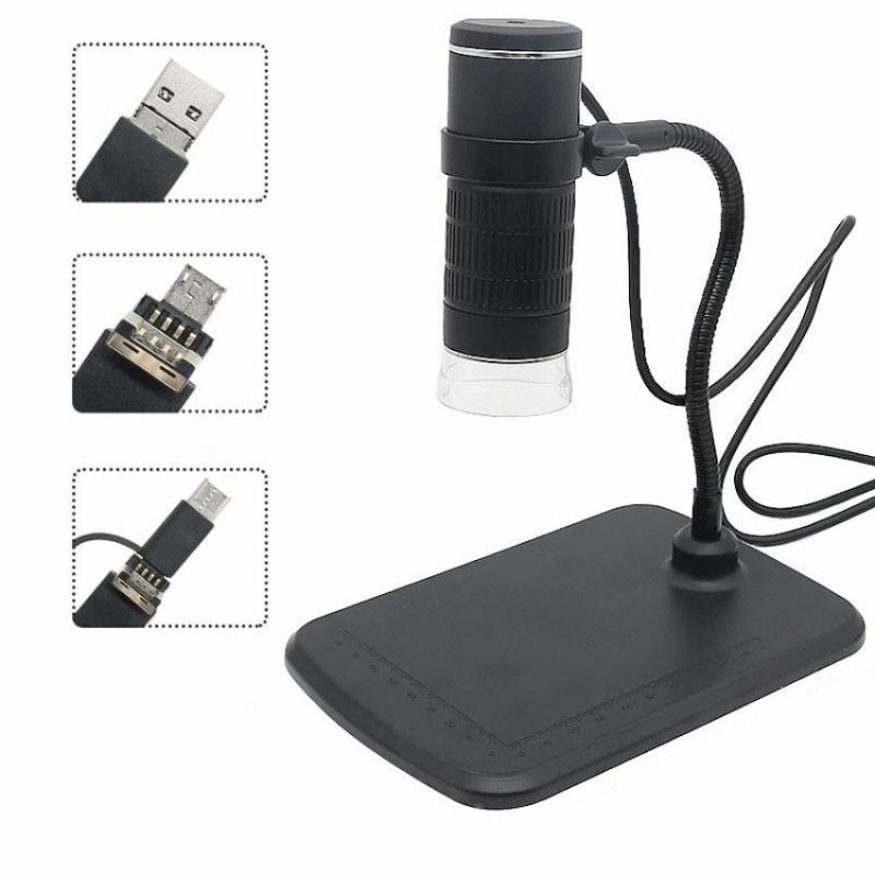 Mikroskop má rozlišení 640x480 a zvětšení až 1000x.