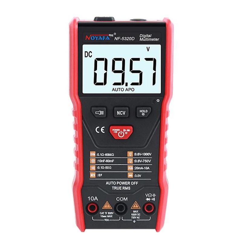 Digitální multimetr NF5320D s podsvíceným LCD, max DC 1000V, max AC 750V, 10A, True RMS a automatický rozsah, odpor do 60 Mohm, kapacita do 30 mF, Max, Min, data hold, zvuková signalizace, vadaska, automatické vypnutí, držák