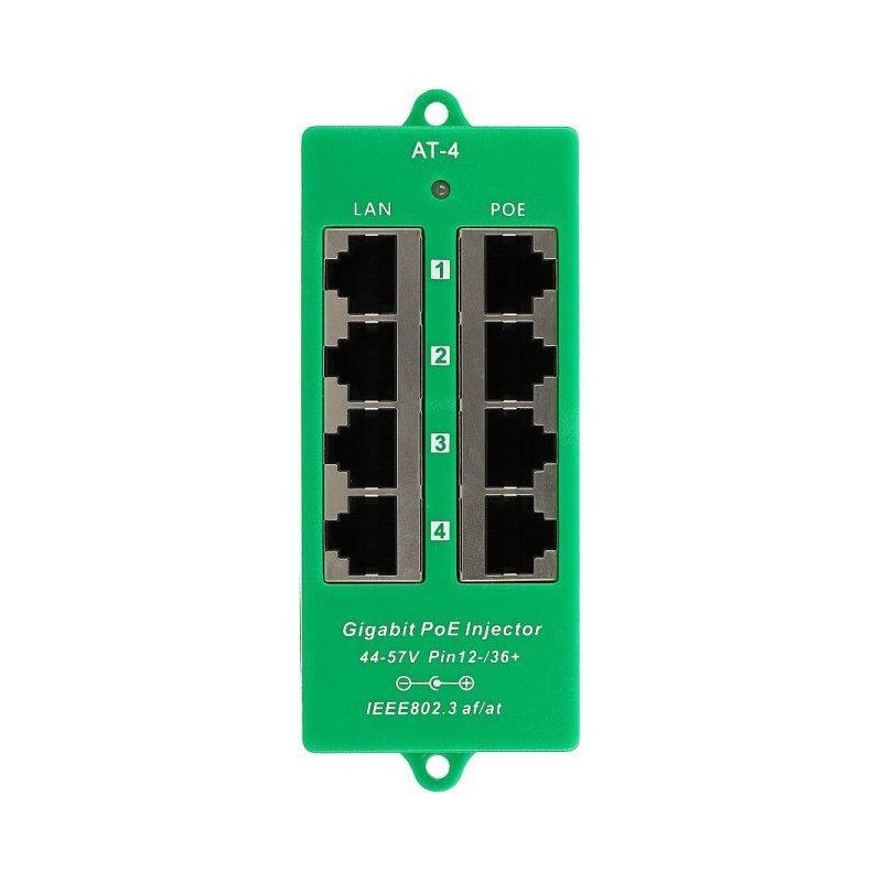 Gigabitový aktivní PoE injektor určený pro napájení až čtyř zařízení, jako jsou IP kamery, VoIP telefony nebo další síťová zařízení s podporou standardů 802.3af/at. Poskytuje spolehlivé napájení i přenos dat po ethernetovém kabelu a je vhodný pro profesionální instalace s vyššími nároky na výkon.