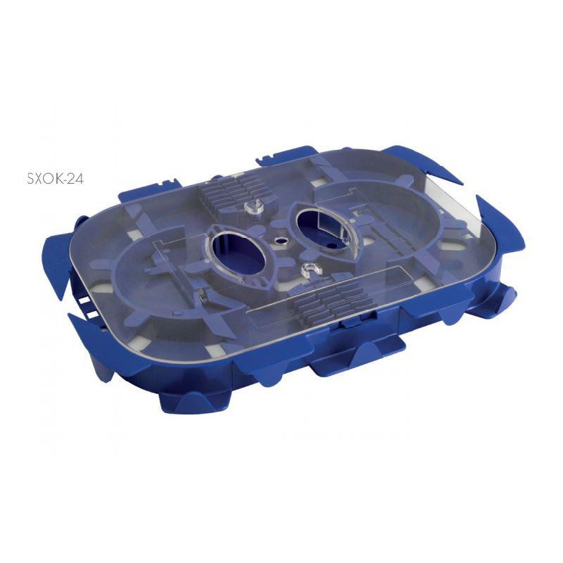Optická kazeta disponuje unikátním systémem pro vedení vláken jak ve vnitřní části, tak i na vnější části po jejím obvodu. Součástí optické kazety jsou dva dvoupatrové hřebínky, které společně pojmou kapacitu až 24 ochran svárů. Uchycení a konstrukční řešení výklopných hřebínků umožňuje vedení vláken pod nimi samotnými. Součásti sady je průhledné plastové víko, které díky jednotlivým uchytům umožňuje pevné stohování kazet. Stohované kazety je možno vyklápět díky přídavným plastovým pantům. Vně optické kazety se nachází nástroj (plastový háček), který usnadňuje práci a manipulaci při ukládání optických vláken. Hřebínky v kazetě jsou kompatibilní pro ochrany svárů do průměru max. 2,2mm.