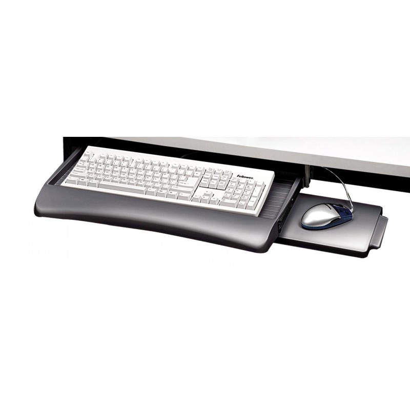 Používáním držáku klávesnice a myši Fellowes předcházíte bolesti zápěstí. Instalace pod pracovní desku psacího nebo obyčejného stolu umožňuje získat dodatečný využitelný prostor. Vhodné do kanceláře i domácnosti. Usnadňuje organizaci věcí na pracovním stole.