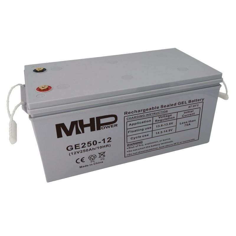 Gelové baterie řady MHPower GE jsou vyráběny se speciálními separátory a silikagelem imobilizujícím elektrolyt uvnitř baterie. Osvědčená technologie silikagelu může zlepšit životnost baterie a výkon v širším teplotním rozsahu. Životnost cyklu hlubokého vybití je zvýšena o 50 % ve srovnání s bateriemi řady MS.
