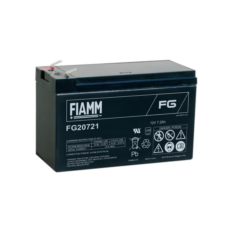 FIAMM FG20721 je hermeticky uzavřený, záložní, bezúdržbový olověný akumulátor určený pro záložní zdroje UPS a jiné elektronické systémy, kde je kladen důraz na vysokou spolehlivost. Baterie Fiamm mají vysokou kvalitou zpracování, lze je provozovat v libovolné poloze a nevyžadují žádnou údržbu.