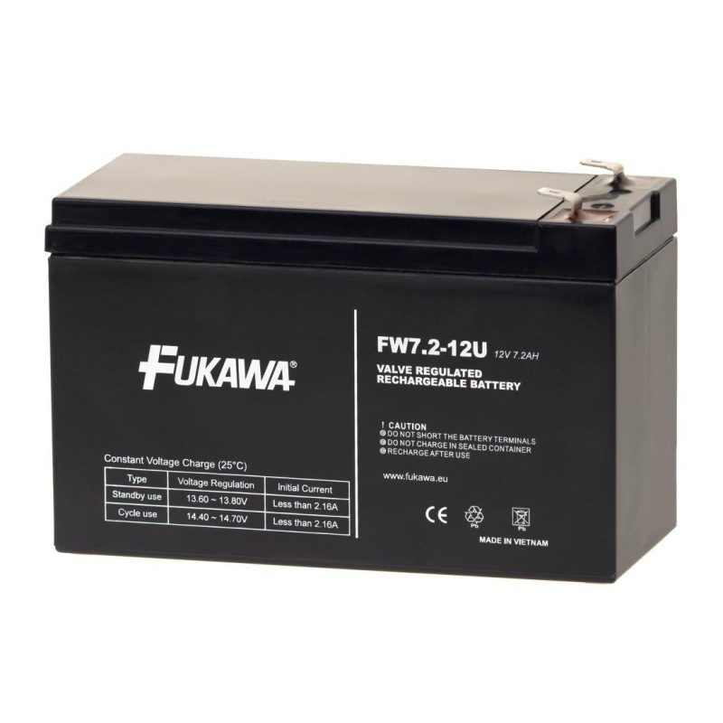 FUKAWA FW 7,2-12 je hermeticky uzavřený, záložní, bezúdržbový olověný akumulátor určený pro záložní zdroje UPS a jiné elektronické systémy. Baterie FUKAWA mají vysokou kvalitou zpracování, jsou velmi spolehlivé a jsou nejlepší variantu v poměru cena/výkon. Díky jejich unikátní konstrukci je lze provozovat v libovolné poloze a nevyžadují žádnou údržbu.