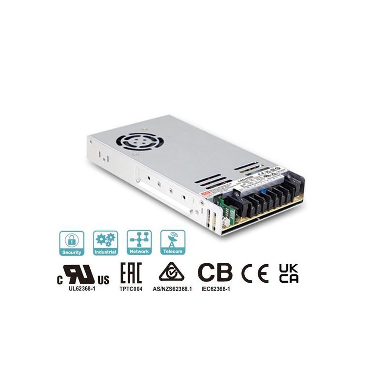 Zdroje přijímají vstupní napětí v rozsahu 90V AC až 264V AC a podporují výstup 13,8V, 27,6V, 41,5V a 55,2VDC.