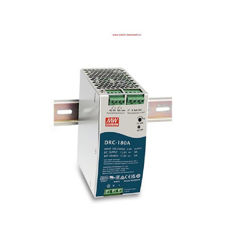 MEANWELL DRC-180B Průmyslový zdroj na DIN s funkcí nabíječky 180W