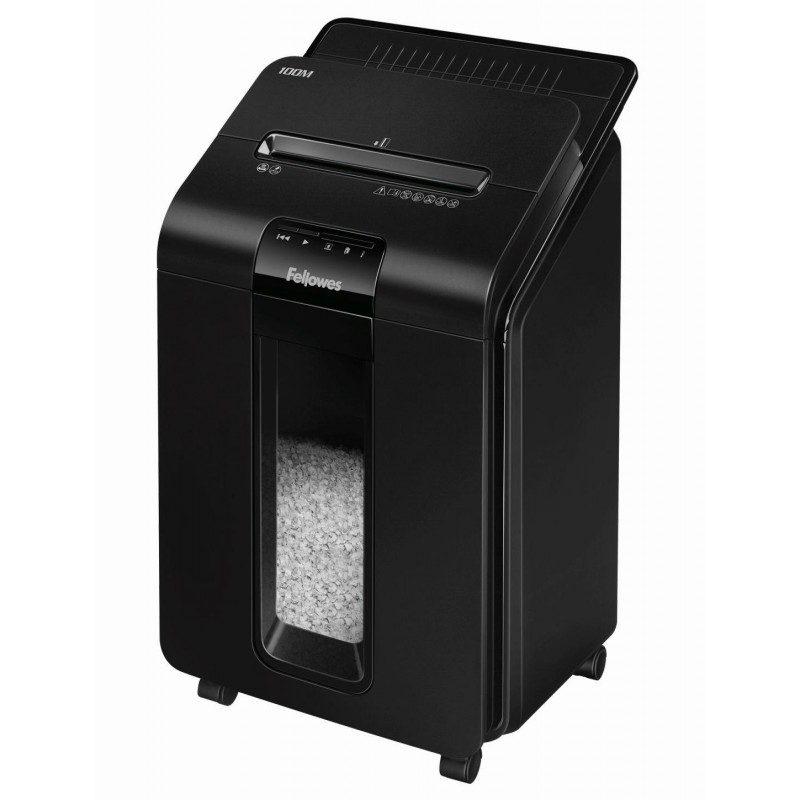 Vstupní model z řady automatických skartovačů značky Fellowes. Jen nalož, zapni a běž. Automatický skartovací stroj Vám šetří čas strávený vkládáním skartovaných papírů. Zařízení je schopno na jeden pracovní cyklus při automatickém podávání skartovat až 100 listů 70g papíru v křížovém mikrořezu řezu 4×10 mm. Skartovač je také vybaven vstupní štěrbinou pro ruční podání až 10 listů papíru. Objem odpadního koše 23 litrů. Řezací mechanismus zpracuje při manuálním podávání sešívačkou sešité papíry (až 20 sešitých listů) a kreditní karty. Snadná manipulace se strojem díky pojezdovým kolečkům.