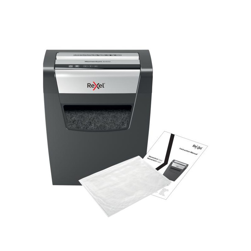 Nezastavitelná skartovačka! Rexel Momentum X410 skartuje až 10 listů najednou a vydrží v nepřetržitém chodu 6 minut, vhodná pro použití doma. Technologie proti zaseknutí papíru garantuje nepřerušované skartování. Křížový řez na úrovni zabezpečení P4 řeže papír na části o velikosti 4x28 mm. Dotykové ovládání pro snadné a intuitivní ovládání. Objemný koš s kapacitou 23 l pojme 225 listů A4.