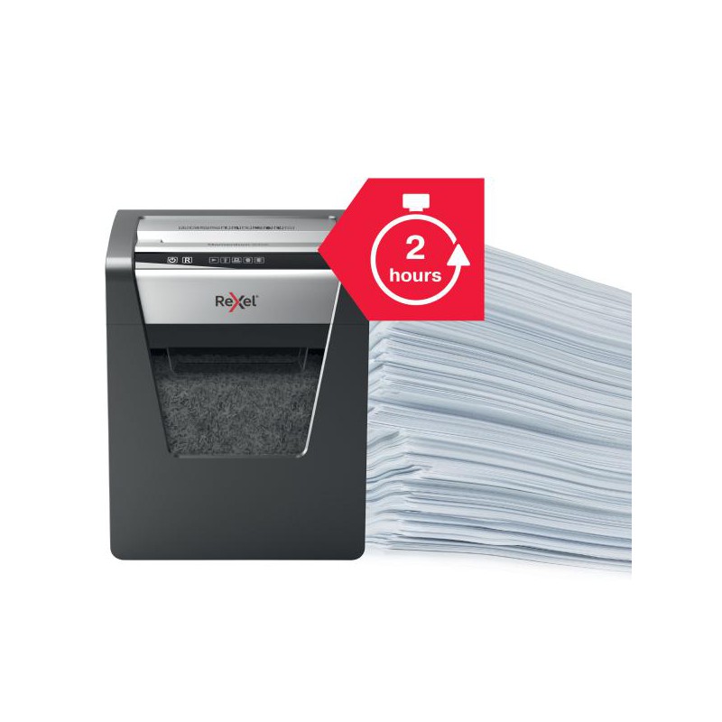 Nezastavitelná skartovačka! Rexel Momentum X415 skartuje až 15 listů najednou a vydrží v nepřetržitém chodu 2 hodiny, vhodná pro použití v menších kancelářích. Technologie proti zaseknutí papíru garantuje nepřerušované skartování. Křížový řez na úrovni zabezpečení P4 řeže papír na části o velikosti 4x40 mm. Dotykové ovládání pro snadné a intuitivní ovládání. Objemný koš s kapacitou 23 l pojme 225 listů A4.