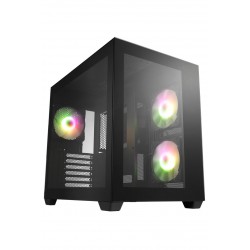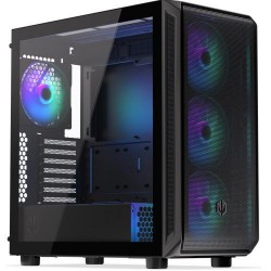 Skutečně herní PC case s vynikajícím vybavením, spoustou místa pro přídavné ventilátor a děrovaným čelem. Zadní panel je vybaven 120mm ventilátorem. Na přední a horní straně jsou umístěny celkem 4 120mm ventilátory. Na spodní místě je místo, které umožňuje přidat další 120mm ventilátor, pokud by bylo potřeba. Systém tak lze naladit pro běžný velmi tichý a velmi výkonný provoz se špičkovým chlazením a může být například doporučen pro grafické stanice. Na horní části skříně jsou vestavěny dva USB 3.0 porty, dva USB2.0, audio porty (AC nebo HD podle potřeby) a panel také obsahuje čtečku SD/MMC/MS karet a místo pro 3,5“ nebo 2,5“ HDD. Celočerné provedení skříně vytváří pocit luxusu.