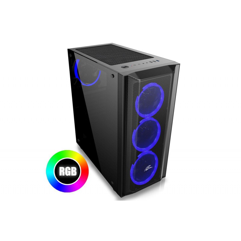Herní ATX midi tower s instalovanými 4x RGB rainbow 120 mm ventilátory, které se ovládájí pomocí LED tlačítka na horní straně ovládacího panelu. Čelní mřížka přes celý přední kryt zajišťuje efektivní proudění vzduch. Levá strana skříně obsahuje bočnici z tvrzeného skla. Skříň je určená pro základní desky podporující platformu Intel i AMD. Mimo formátu ATX je kompatibilní i s formátem Micro ATXa Mini ITX. Napájecí zdroj se umísťuje do dolní části skříně. Spodní mřížka je osazena vysouvacím prachovým filtrem, horní prachový filter je uchycený magnety a