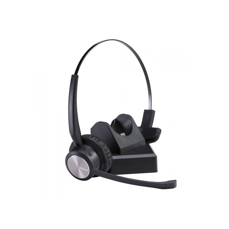 Bezdrátová dvouušní náhlavní souprava v moderním elegantním designu, s mikrofonem.