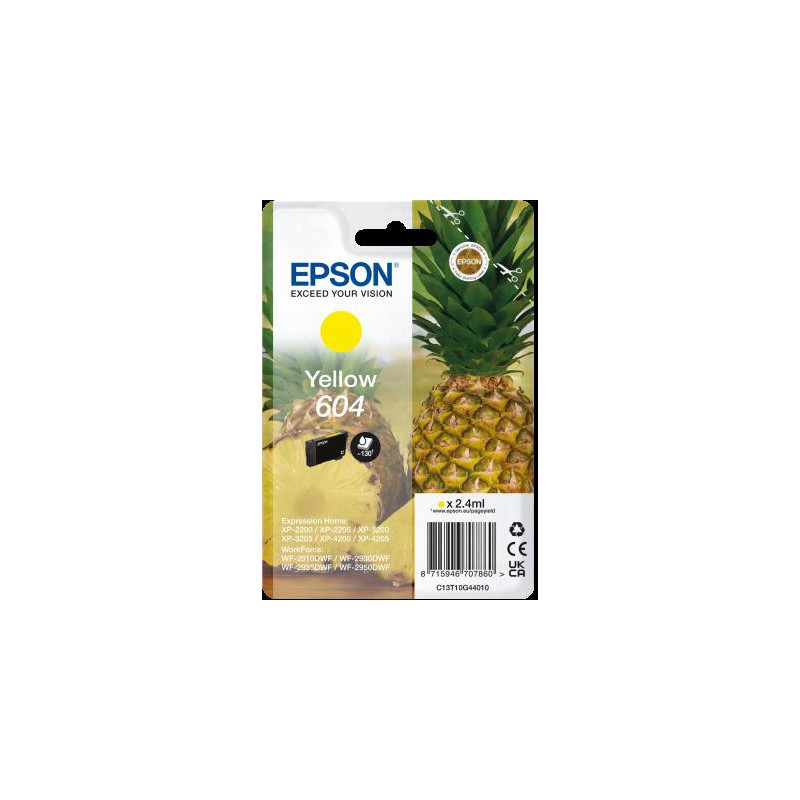 Spolehlivé čtyřbarevné samostatné inkousty Epson jsou ideální pro každodenní tisk. K dispozici je cenově dostupná kazeta pro všechny uživatele, se standardními velikostmi i velikostmi XL, které jsou dostupné v baleních Single a Multipack. V prodejně je snadno najdete podle obrázku s ananasem.