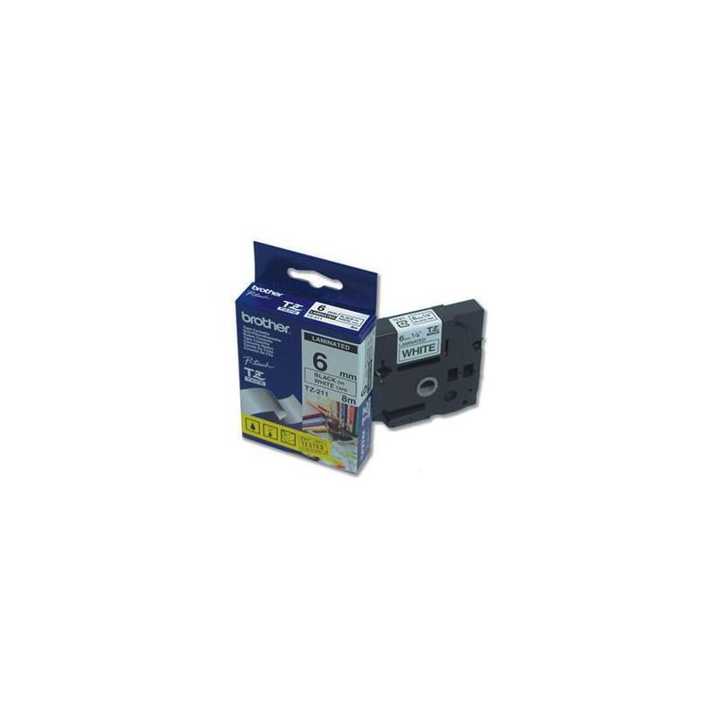 Originální kazeta s páskou Brother TZe-211 - černý tisk na bílé, šířka 6 mm