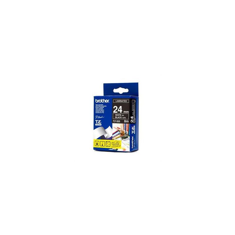 Originální kazeta s páskou Brother TZe-355 - bílý tisk na černé, šířka 24 mm