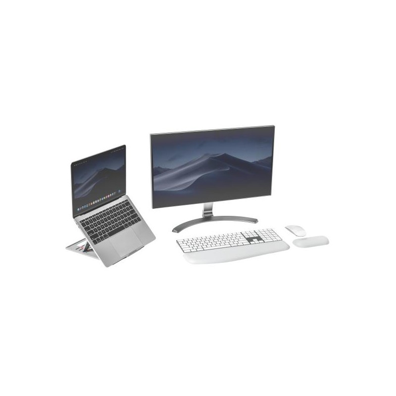 Spojte ergonomické přínosy s technologickými a používejte nastavitelný stojánek pro notebook Kensington® SmartFit® Easy Riser™ Go (šedý). Elegantní provedení typu 2 v 1 nabízí nejen nastavení výšky a sklonu, které zlepšuje držení těla, přispívá ke správnému zaměření pohledu a zvyšuje pohodu šíje i ramen, ale i lepší chlazení vnitřních částí notebooku. Neklouzavé nožky brání posouvání stojánku, polstrované vložky zaručují bezpečné uložení vašeho zařízení a útlá skládací konstrukce je výhodná při cestování. Stojánek byste měli používat s externí klávesnicí a myší (prodávají se samostatně). Je vhodný pro standardní i herní notebooky s úhlopříčkou 14".