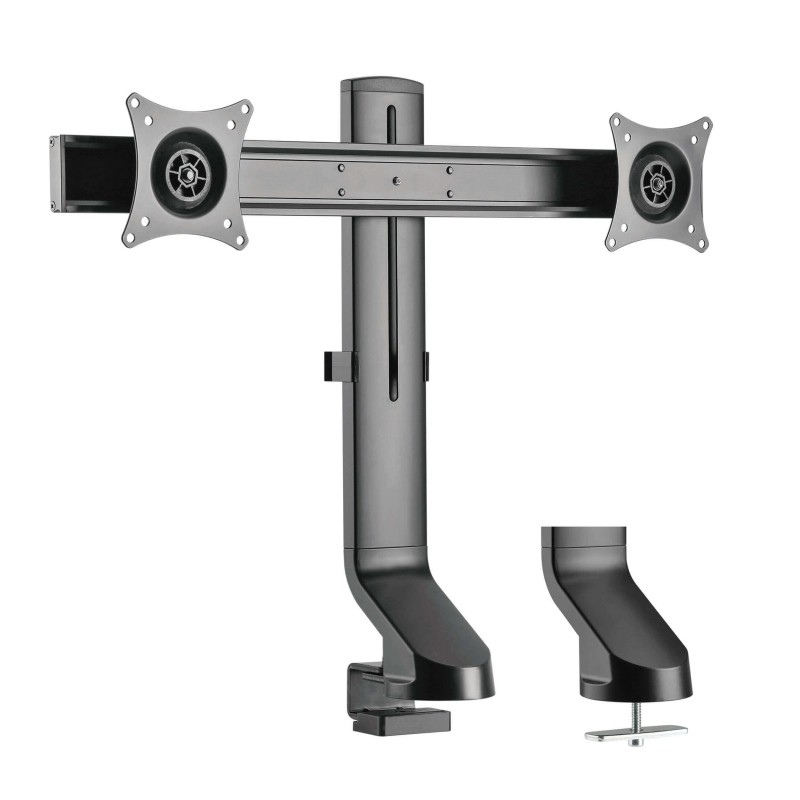 Rameno monitoru se dvěma displeji se svorkou na stůl a průchodkou – výškově nastavitelné, monitory 17” až 27”
