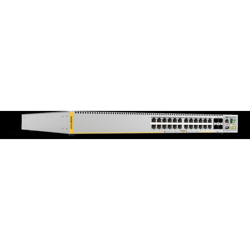 The x510-28GPX features 24 x 10/100/1000T PoE+ ports and 4 x 10G/1G SFP+ uplink ports. It includes two internal power supplies for high reliability, as well as VCStack™, allowing devices to be stacked to create highly resilient solutions that can be distributed over long distances. The AT-x510-28GPX delivers up to 30 Watts per port (PoE+), perfect for supporting standard as well as Pan/Tilt/Zoom video surveillance and security cameras, wireless access points, IP phones, RFID readers, automatic doors and other PoE-powered devices. This PoE option eliminates the need for power rewiring and minimizes the clutter of power supplies and adapters in awkward places. The x510-28GPX is designed for the edge of enterprises, retail, government, universities and medical campuses.